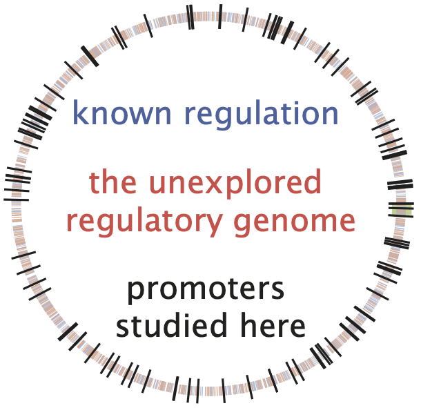 Advances in DNA sequencing have revolutionized our ability to read genomes. However, even in the most well-studied of organisms, the bacterium Escherichia coli, for ~65% of the promoters we remain completely ignorant of their regulation. Until we have cracked this regulatory Rosetta Stone, efforts to read and write genomes will remain haphazard. We introduce a new method (Reg-Seq) linking a massively-parallel reporter assay and mass spectrometry to produce a base pair resolution dissection of more than 100 promoters in E. coli in 12 different growth conditions. First, we show that our method recapitulates regulatory information from known sequences. Then, we examine the regulatory architectures for more than 80 promoters in the E. coli genome which previously had no known regulation. In many cases, we also identify which transcription factors mediate their regulation. The method introduced here clears a path for fully characterizing the regulatory genome of model organisms, with the potential of moving on to an array of other microbes of ecological and medical relevance.